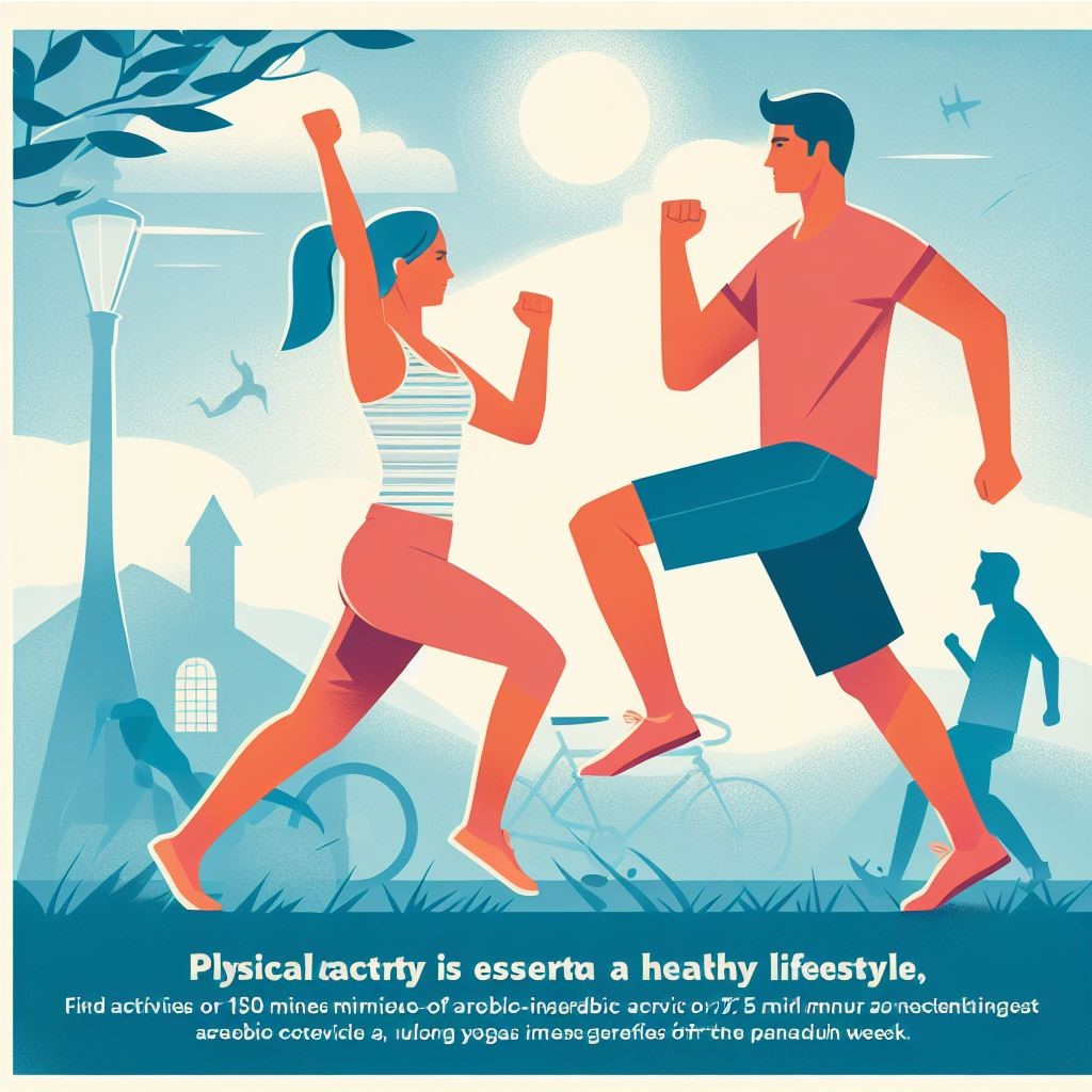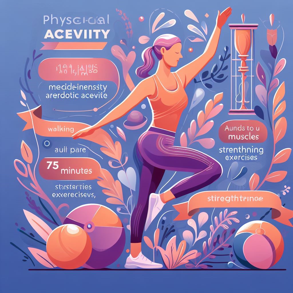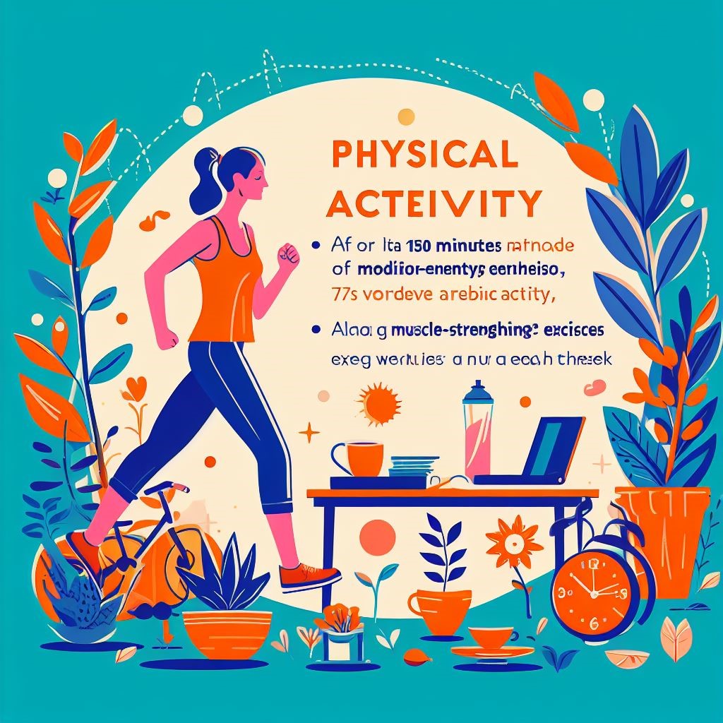 Physical activity is an essential pillar of a healthy lifestyle. Find activities that you enjoy and make them a regular part of your routine. Whether it’s walking, dancing, practicing yoga, or engaging in strength training, regular exercise has numerous benefits for your physical and mental health. Aim for at least 150 minutes of moderate-intensity aerobic activity or 75 minutes of vigorous-intensity aerobic activity each week, along with muscle-strengthening exercises twice a week.